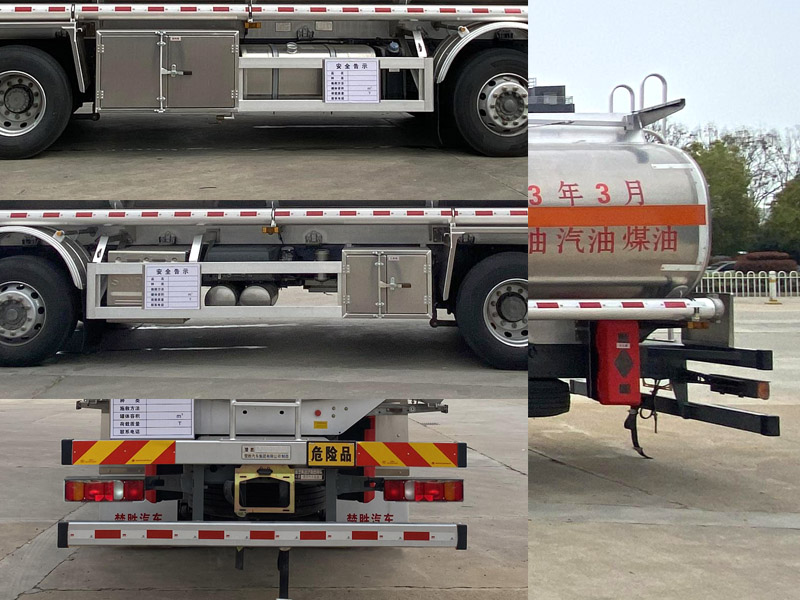 其它:1、該車適用于危險品運輸,運送危險貨物車輛類型為:FL型。準運介質(zhì)最大密度:850千克/立方米,罐體外形尺寸(mm):9000×2250×1500,罐體總?cè)萘?4.3立方米,罐體有效容積24.2立方米。2、側(cè)防護材料為鋁合金,螺栓連接;后防護材料為Q235,螺栓連接,截面尺寸(mm)80×140,下邊緣離地高410mm。3、隨底盤選裝駕駛室,選裝頂置空調(diào),選裝電瓶、儲氣筒、尿素罐位置。僅選用排氣管前置,前輪盤式制動,限速裝置(限速80km/h)及子午線輪胎的底盤。轉(zhuǎn)向輪安裝輪胎爆胎應(yīng)急防護裝置。后軸采用空氣懸架。安裝帶有衛(wèi)星定位功能的行駛記錄儀。EBS系統(tǒng)型號/生產(chǎn)廠家: EBS3/采埃孚商用車系統(tǒng)(青島)有限公司。發(fā)動機與油耗值(L/100Km)對應(yīng)關(guān)系為:MC07.31-60/38.03,MC07.33-60/38.03,MC07.34-60/38.03,WP8.350E61/38.04,MC07H.29-60/35.15,MC07H.33-60/35.15,MC07H.35-60/35.15,WP7.300E61/36.25。選裝ETC。罐體上部選裝上走道,左右側(cè)后部選裝工具箱,選裝左側(cè)工具箱樣式。第二軸選裝弧形膠制擋泥板或方形擋泥板。僅采用1800+4575+1400mm軸距。