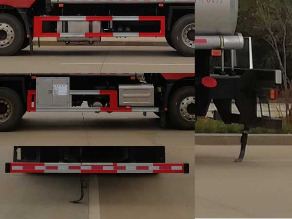 | 配置 | 1、該車適用于危險(xiǎn)品運(yùn)輸,運(yùn)送危險(xiǎn)貨物車輛類型為:FL型,類項(xiàng)號(hào):3。運(yùn)輸介質(zhì):汽油,密度:700千克/立方米。罐體有效容積21.4立方米,罐體外形尺寸(長(zhǎng)×寬×高)(mm):7000×2350×1580。2、側(cè)、后防護(hù)材料均為Q235,螺栓連接;后防護(hù)截面尺寸(寬×高)(mm)60×120,下邊緣離地高500mm。3、EBS系統(tǒng)生產(chǎn)廠家及型號(hào)分別為:威伯科汽車**系統(tǒng)(**)有限公司(EBS3)。僅選用排氣管前置、限速裝置(限速79km/h)、前輪盤式制動(dòng)及子午線輪胎的底盤;安裝帶有衛(wèi)星定位功能的行駛記錄儀;發(fā)動(dòng)機(jī)型號(hào)及油耗值(L/100km)為:WP7.270E61/36.79,WP7.300E61/36.79。后軸采用空氣懸架。轉(zhuǎn)向輪安裝輪胎爆胎應(yīng)急防護(hù)裝置。 | ||