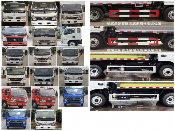 其它 | 該車主要專用裝置由箱體、壓縮系統(tǒng)組成,用于垃圾的收集與清運.側(cè)防護材料為冷彎型鋼/Q235,螺栓連接;后防護由專用裝置代替,下邊緣離地高450mm.選裝方形或弧形車箱;選裝箱體與駕駛室之間多路閥、液壓油箱、液壓管布置;選裝箱體前端爬梯位置;選裝電瓶位置;選裝多路閥罩;選裝填裝器外罩;選裝后密封蓋裝置.選裝不同工作裝置時外形長/后伸(mm)對應(yīng)關(guān)系:①無上料裝置:6500/0,②擺臂裝置:6650/150,③全密封斗裝置:6650/150, ④半密封斗裝置及⑤翻桶裝置:6900/400.發(fā)動機與油耗值(L/100km)的對應(yīng)關(guān)系為:CA4DB1-11E6/16.3,CY4BK161/16.2,CY4BK461/16.2,D20TCIF1/16.3,D20TCIF11/16.3,YCY24140-60/16.3,ZD30D16-6N/16.3,H20-120E60/14.9,Q28-130E60/15.9,CA4DB1-13E6/16.2,Q23-115E60/14.5.隨底盤選裝前面罩,前保險杠,前組合燈具,選裝排半駕駛室,選裝左右油箱位置,隨底盤配置選裝底盤附件安裝位置.僅選用軸距3308mm底盤改裝.選裝直接供電式ETC車載裝置.ABS型號/生產(chǎn)企業(yè):ABS/ASR-12V-4S/4M/襄陽東風隆誠機械有限責任公司.各發(fā)動機凈功率(kW)值如下:D20TCIF1:88,YCY24140-60:99,CA4DB1-11E6:79,ZD30D16-6N:115,CY4BK461:92,CY4BK161:102,Q23-115E60:82,H20-120E60:87,CA4DB1-13E6:93.Q28-130E60:93,D20TCIF11:88.隨底盤選裝氣壇子、尿素罐安裝位置.選裝電瓶安裝位置,選裝污水箱安裝位置.選裝填充器樣式.選裝后部工作裝置. | ||