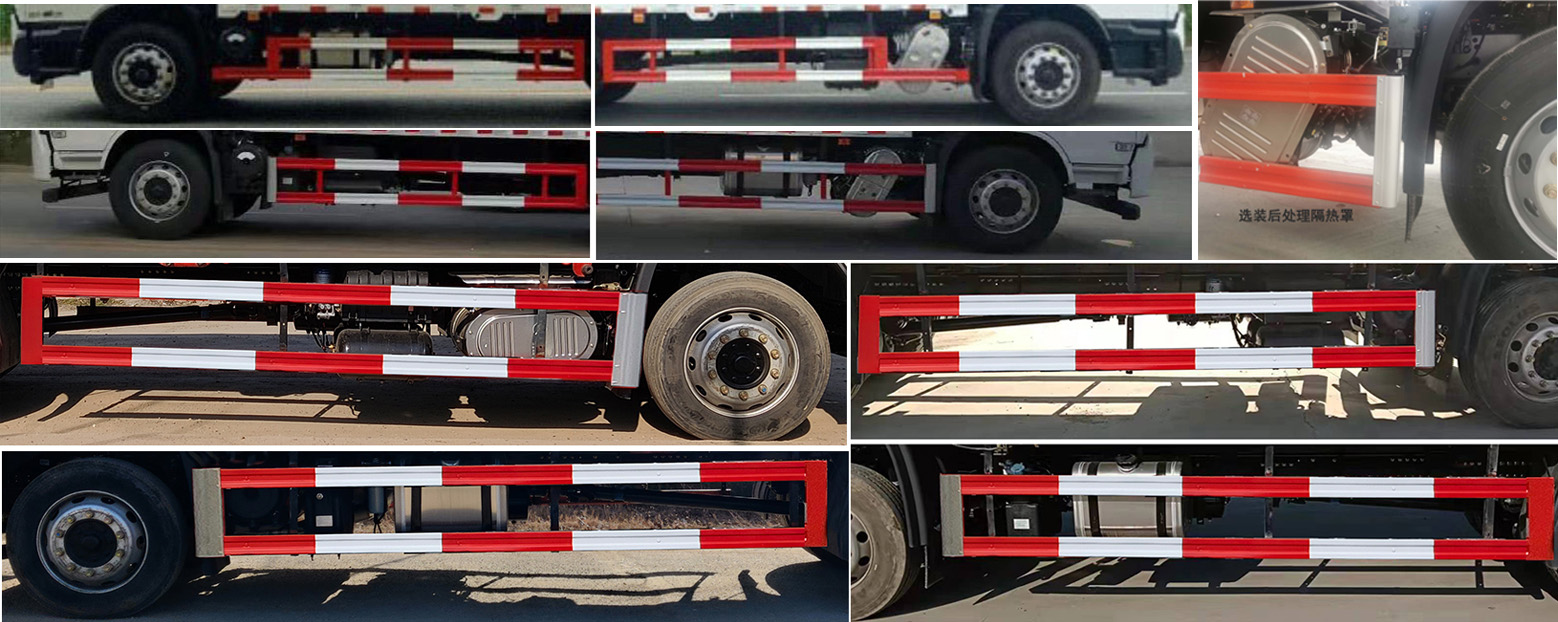 其它:該車適用于運(yùn)輸危險(xiǎn)品,運(yùn)輸具有獨(dú)立容器(瓶)包裝的物品.運(yùn)送危險(xiǎn)物品類項(xiàng)號:2.1,2.2.側(cè),后防護(hù)材料均為Q235,側(cè)防護(hù)焊接連接,后防護(hù)焊接.截面尺寸120×50mm,下邊緣離地高440mm.選裝后部無液壓尾板時(shí),后防護(hù)材料為Q235,后防護(hù)焊接.截面尺寸120×60mm,下邊緣離地高440mm.僅選用排氣管前置、限速裝置(限速80km/h)、前輪盤式制動及子午線輪胎的底盤,后軸裝備空氣懸架,轉(zhuǎn)向輪安裝輪胎爆胎應(yīng)急防護(hù)裝置,安裝帶有衛(wèi)星定位功能的行駛記錄儀.EBS型號/生產(chǎn)廠家:EBS5/東科克諾爾商用車制動系統(tǒng)(十堰)有限公司.采用的發(fā)動機(jī)與油耗值(L/100Km)對應(yīng)關(guān)系為:B6.2NS6B210/26.5,DDi50E190-60/23.9.液壓升降尾板收起狀態(tài)水平長度為290mm,尾板質(zhì)量為550kg.該車型可選裝直接供電式ETC車載裝置.廂體選裝無柵欄,選裝柵欄樣式,選裝貨箱箱板結(jié)構(gòu).隨底盤選裝燃油箱,電瓶,尿素罐,儲氣筒,后處理左右安裝位置,選裝后處理隔熱罩.僅采用底盤4700mm,5000mm軸距改裝.